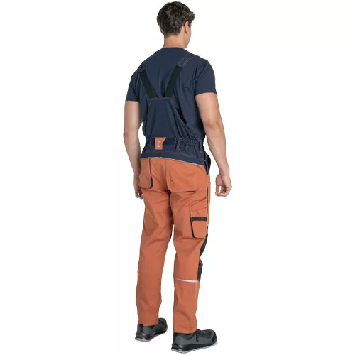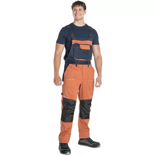 • férfi melles munkanadrág rugalmas anyagból • elasztikus derékrész övbújtatókkal • 2 első zseb, 2 hátsó zseb • 2 cipzáras, hálós szellőző zseb a combrészen • 1 multifunkciós zseb a jobb oldalon • 1 multifunkciós mellzseb • megerősített térdrész térdvédő behelyezéséhez • fényvisszaverő szegélyek és nyomott mintás részletek • a nadrágszár hossza 5 cm-rel hosszabbítható