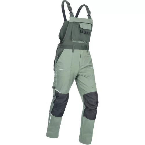 • férfi melles munkanadrág rugalmas anyagból • elasztikus derékrész övbújtatókkal • 2 első zseb, 2 hátsó zseb • 2 cipzáras, hálós szellőző zseb a combrészen • 1 multifunkciós zseb a jobb oldalon • 1 multifunkciós mellzseb • megerősített térdrész térdvédő behelyezéséhez • fényvisszaverő szegélyek és nyomott mintás részletek • a nadrágszár hossza 5 cm-rel hosszabbítható