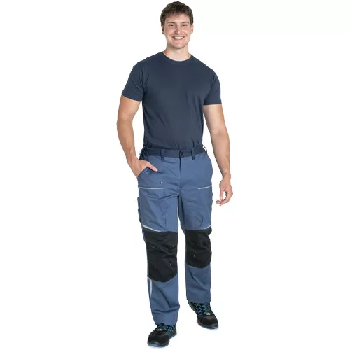• férfi munkanadrág rugalmas anyagból • elasztikus derékrész övbújtatókkal • 2 első zseb, 2 hátsó zseb • 2 cipzáras, hálós szellőző zseb a combrészen