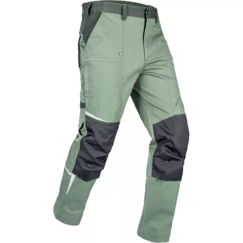 • férfi munkanadrág rugalmas anyagból • elasztikus derékrész övbújtatókkal • 2 első zseb, 2 hátsó zseb • 2 cipzáras, hálós szellőző zseb a combrészen
