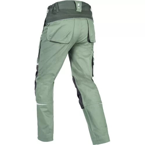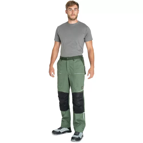 • férfi munkanadrág rugalmas anyagból • elasztikus derékrész övbújtatókkal • 2 első zseb, 2 hátsó zseb • 2 cipzáras, hálós szellőző zseb a combrészen