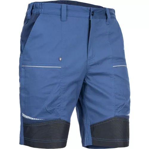 • férfi munkarövidnadrág rugalmas anyagból • elasztikus derékrész övbújtatókkal • 2 első zseb, 2 hátsó zseb • 2 cipzáras, hálós szellőző zseb a combrészen • megerősített elülső szárrészek • fényvisszaverő szegélyek és nyomott mintás részletek