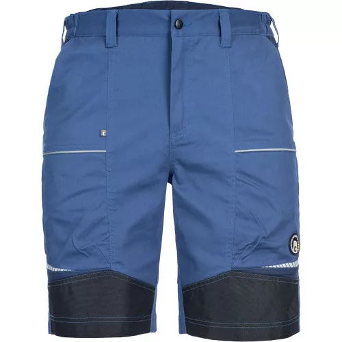 • férfi munkarövidnadrág rugalmas anyagból • elasztikus derékrész övbújtatókkal • 2 első zseb, 2 hátsó zseb • 2 cipzáras, hálós szellőző zseb a combrészen • megerősített elülső szárrészek • fényvisszaverő szegélyek és nyomott mintás részletek