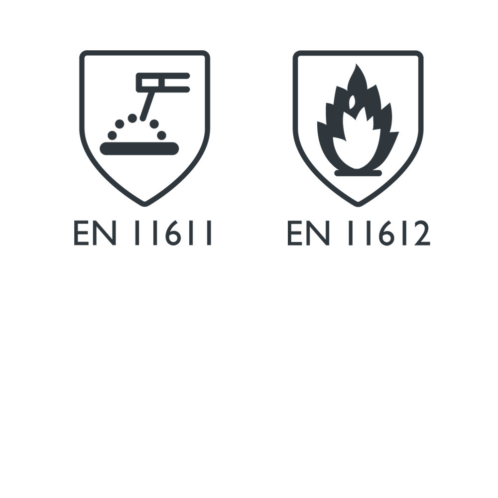 - EN ISO 11611:2015 Klasa 1, A1+A2