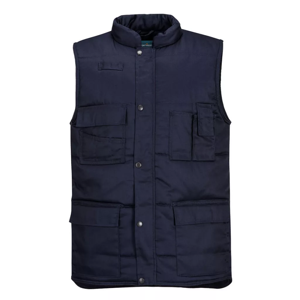This garment offers all the characteristics of a classic bodywarmer with the advantage of extra pockets. Features include mobile phone pocket and internal top pocket with zip fastening.