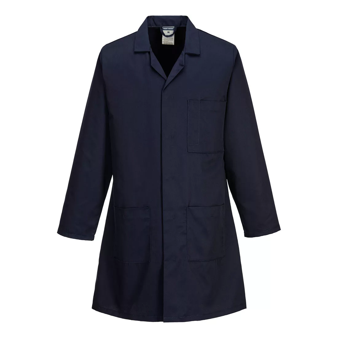 This versatile coat features a concealed stud front, two lower patch pockets and a single chest pocket. Made from our hard wearing Kingsmill polycotton.