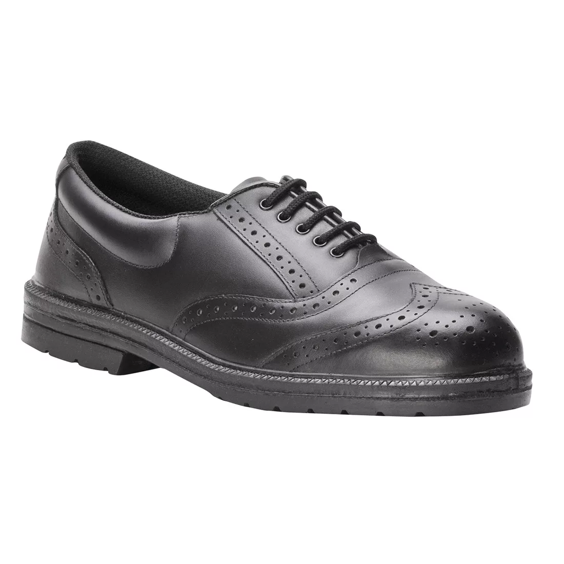Brogue style executive safety shoe manufactured from Brazilian full grain cow leather with a special moisture management fabric for extra comfort.