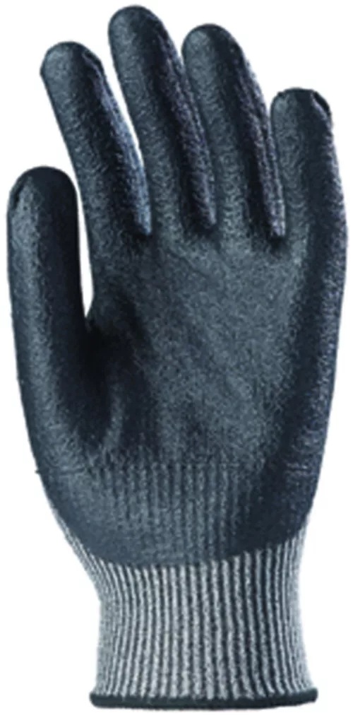 * Taeki 5(R) 13-as kötésű multiszálas védőkesztyű: rendkívüli kopásállóságú és szakítószilárdságú, * 5-ös szinten vágásbiztos, rugalmas alapanyagok (Spandex(R), szintetikus- és üvegszálak)* tenyerén fekete nitril mártás* rugalmas mandzsetta, szellőző kézhát, kiváló fogásbiztosság