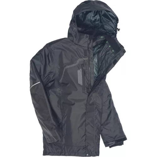 • modern szabású télikabát, kivehető steppelt béléssel, cipzáras záródás patentos hajtókával • cipzáras Napóleon zseb jobb oldalon fülhallgató tartóval, patentos zseb a bal oldalon, belső zsebek, levehető kapucni • Cordura megerősítés a váll- és könyökrészen, tépőzárral szűkíthető mandzsetátk, kontrasztos varratok, fényvisszavető jelzőfolt és részletek