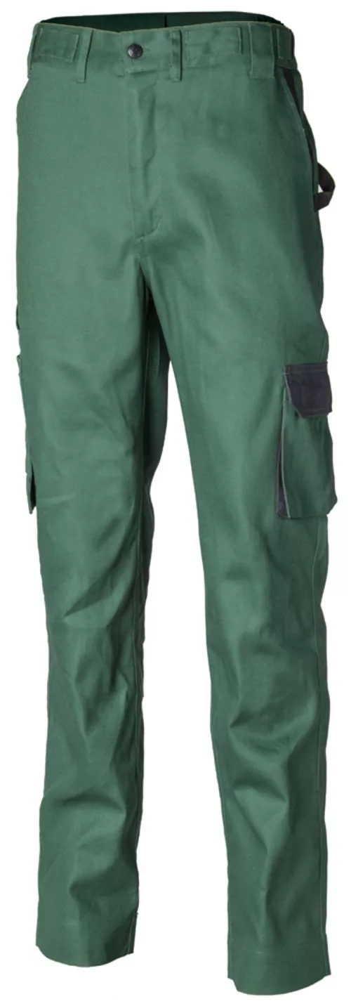Twill (sarga szövés): 35 % pamut + 65 % poliészter - vastagság 245 g/m2 * Praktikus, egyenes szabású deréknadrág * Zsebek, redők és esztétikai színes betétek * Rugalmas derék + széles övhurkok / 4 csat a választható levehető zsebekhez * 2 oldalsó zseb / 2 fedett hátsó zseb / 1 cargo zseb / 1 ceruzazseb + több rekeszes kialakítás * Szerszámtartó és praktikus kiegészítők * Biztonsági dupla varrás a lábak teljes hosszában és hátul * Állítható derékszélesség és lehetőség 5 cm-rel hosszabbítani a lábakat