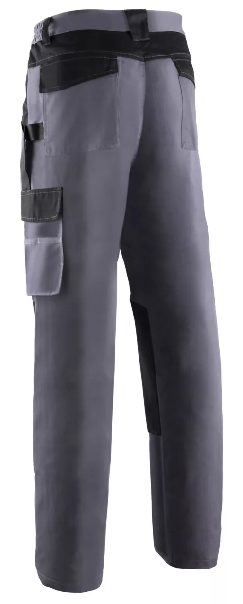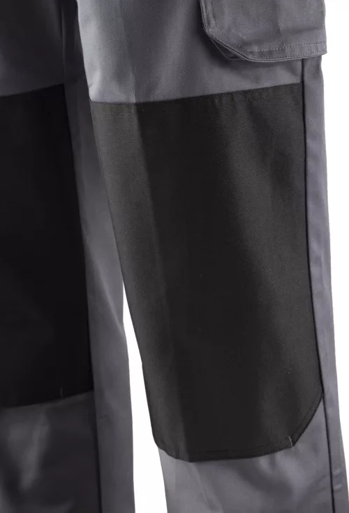 Twill (sávoly szövés): 60% pamut/40% PES - 270 g/m² + Oxford 600D - acélszürke, Gumírozott derék, 6 zseb, 2 szerszámtartó hurok, Oxford térdvédő zsebek, Kontraszt színek, Regular fit,EN 14404: type 2