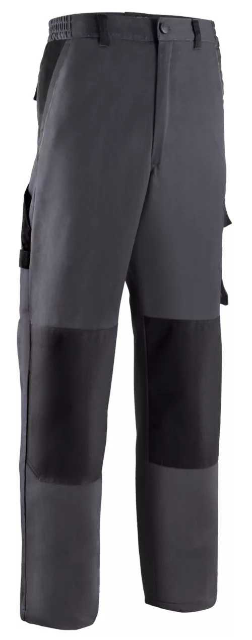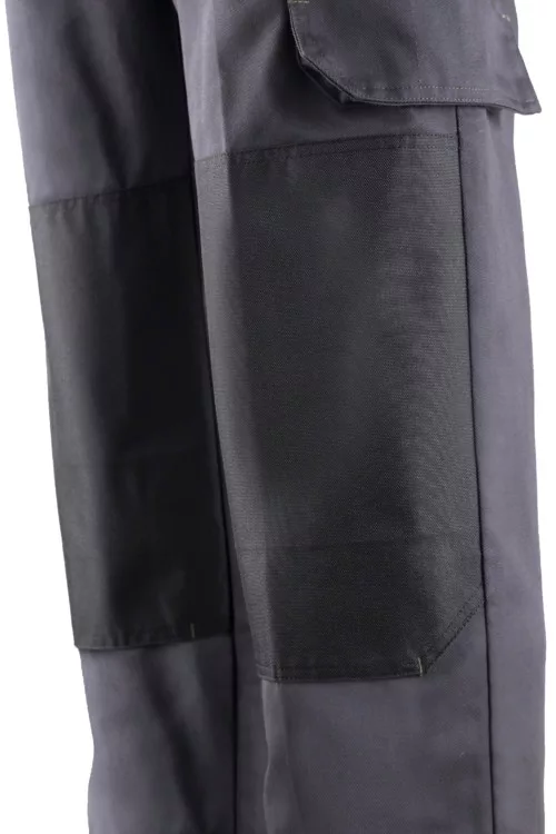 Twill (sávoly szövés): 60% pamut/40% PES - 270 g/m² + Oxford 600D - sötétszürke, Gumírozott derék, 6 zseb, 2 szerszámtartó hurok, Oxford térdvédő zsebek, Kontraszt színek, Regular fit,EN 14404: type 2