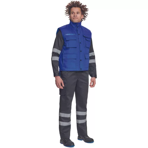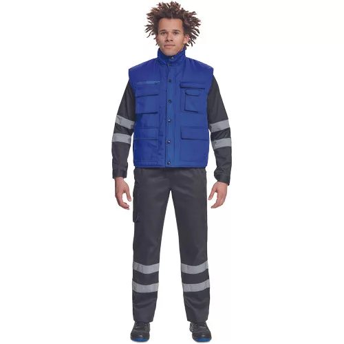 • bélelt mellény állógallérral • hosszított hátrész • műanyag patentokkal