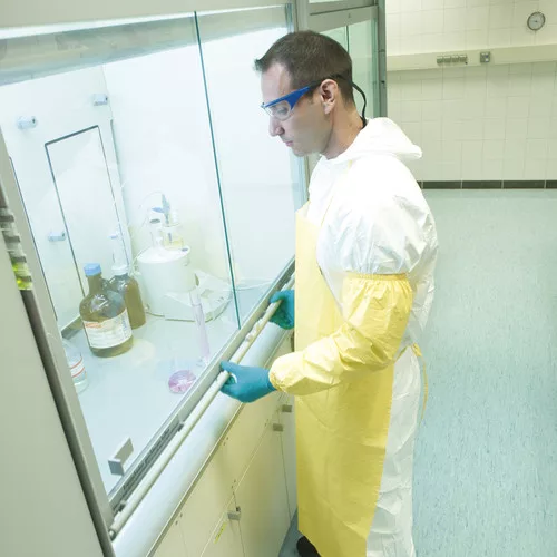 * TYCHEM 2000 C KÖTÉNY: * Tyvek(R) anyagból polimer bevonattal * csekély súly, kiváló védelem mechanikai ártalmak és fröccsenő vegyszerek ellen * nyak-és derékpánt, 70 x 108 cm