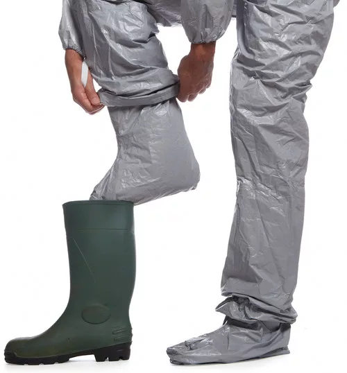 * Tychem 6000 F 118 g/m2 vastag poliészter filmréteggel bevont Tyvek(R) alapanyagú, szürke, antisztatikus, kapucnis védőoverál* véd bármely szemcsenagyságú por és radioaktív részecskék ellen, 5 bar nyomásig ellenáll szervetlen és számos szerves fröccsenő vegyszereknek, olajoknak, oldószereknek és véd mikroorganizmusok és vér ellen* rendkívül nagy kopásállóságú és szakítószilárdságú, gumizott derék-, arc-, csukló- és bokarész, dupla cipzárfedél öntapadós ragasztószalaggal, biztonsági szalagok, rugalmas hüvelykujjakasztó * III. védelmi kategória, 3., 4., 5. és 6. típusú védelem