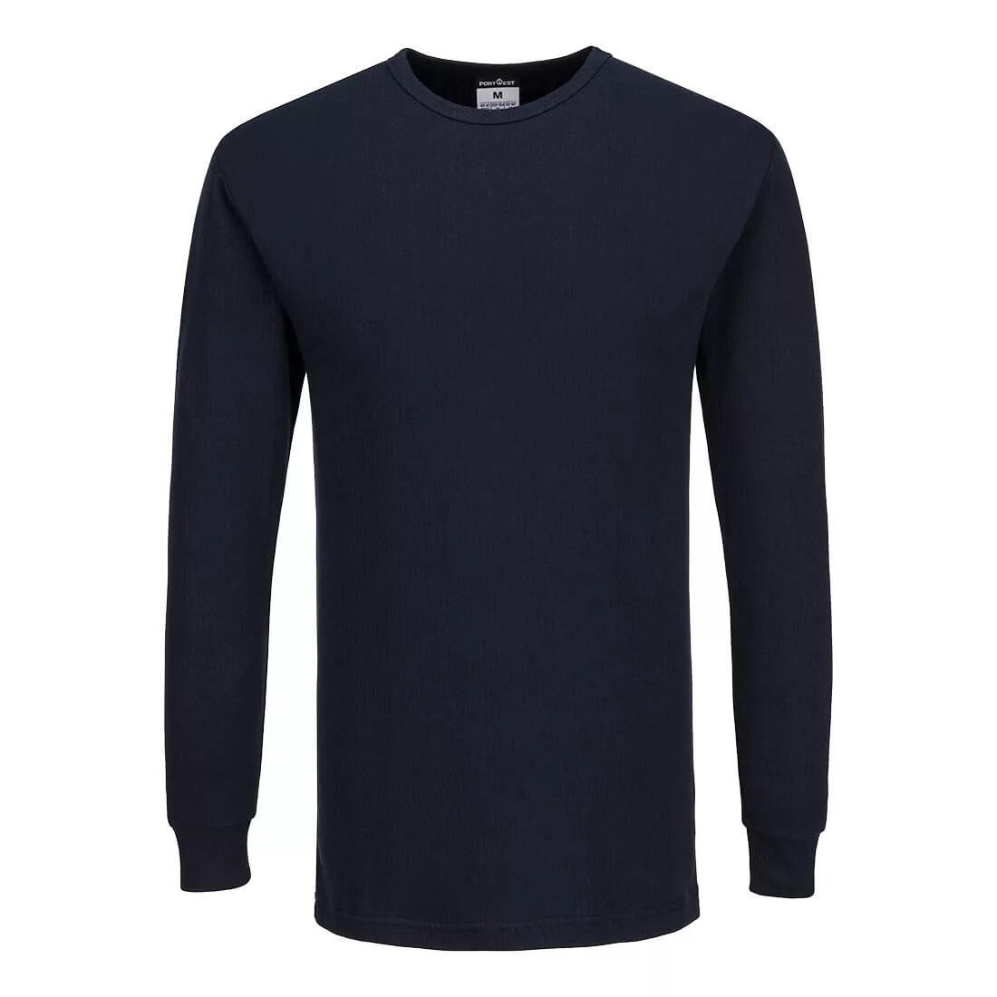 A long sleeve t-shirt cut that offers optimum warmth at all times. The material construction allows the skin to breathe if conditions become too warm. The round neck makes it ideal for wearing as an under-garment
