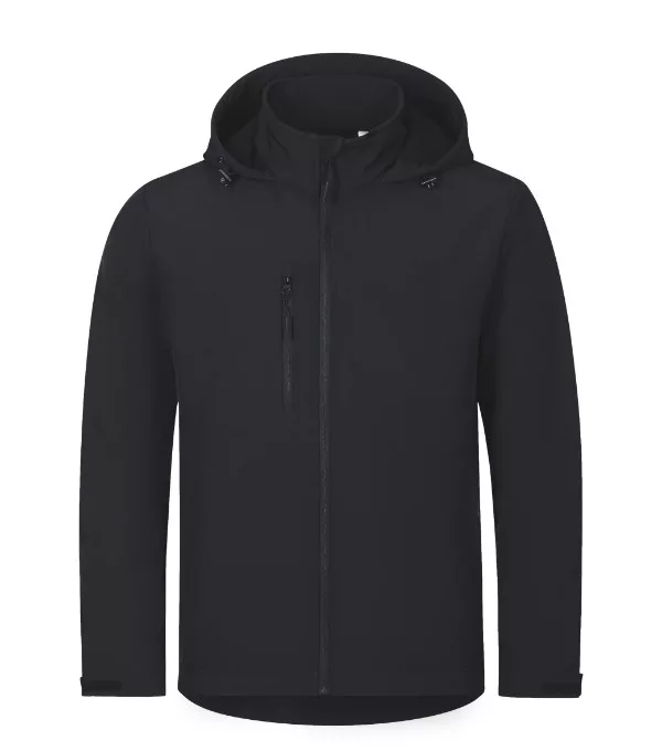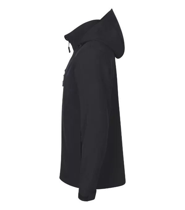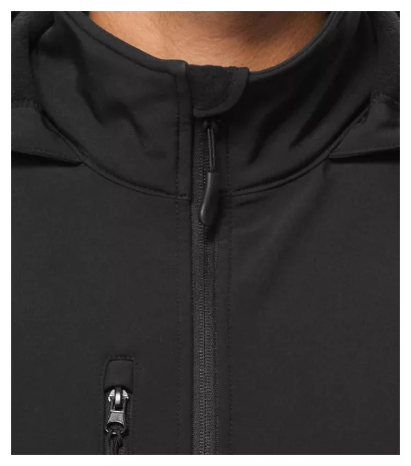 Softshell: 96 % poliészter, 4 % elasztán, 100D, 4-Way Stretch, vízlepergető felület