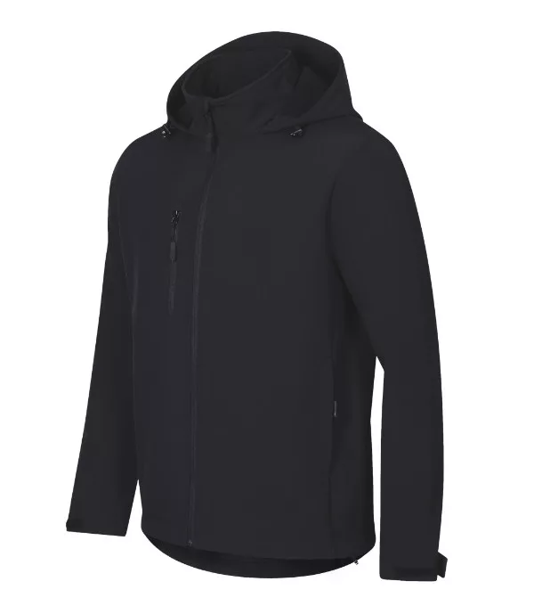 Softshell: 96 % poliészter, 4 % elasztán, 100D, 4-Way Stretch, vízlepergető felület