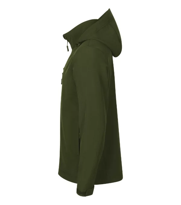 Softshell: 96 % poliészter, 4 % elasztán, 100D, 4-Way Stretch, vízlepergető felület