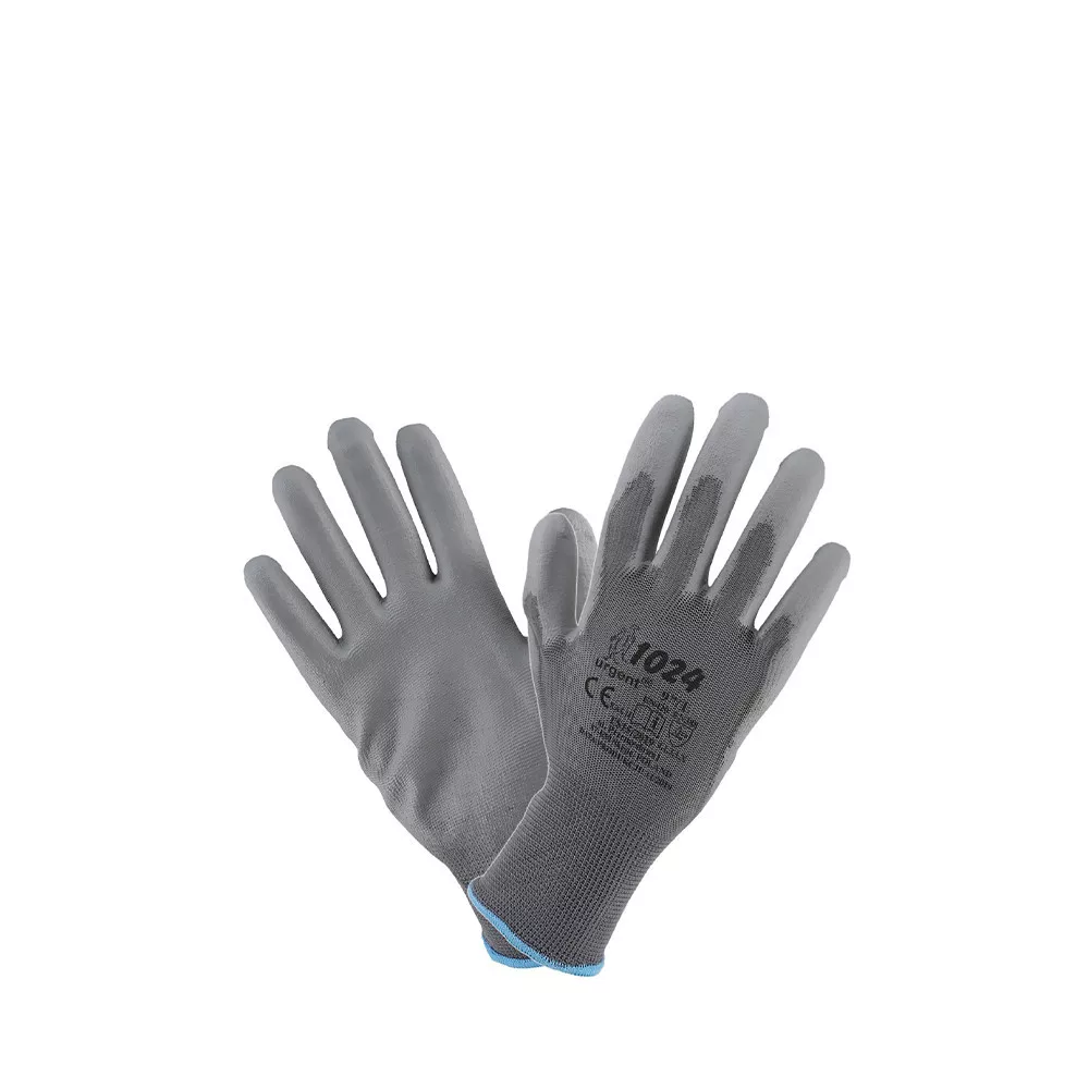 Poliészter alapanyagra ujjbegyig mártott védőkesztyű, vékony poliuretán mártással és gumírozott mandzsettával.