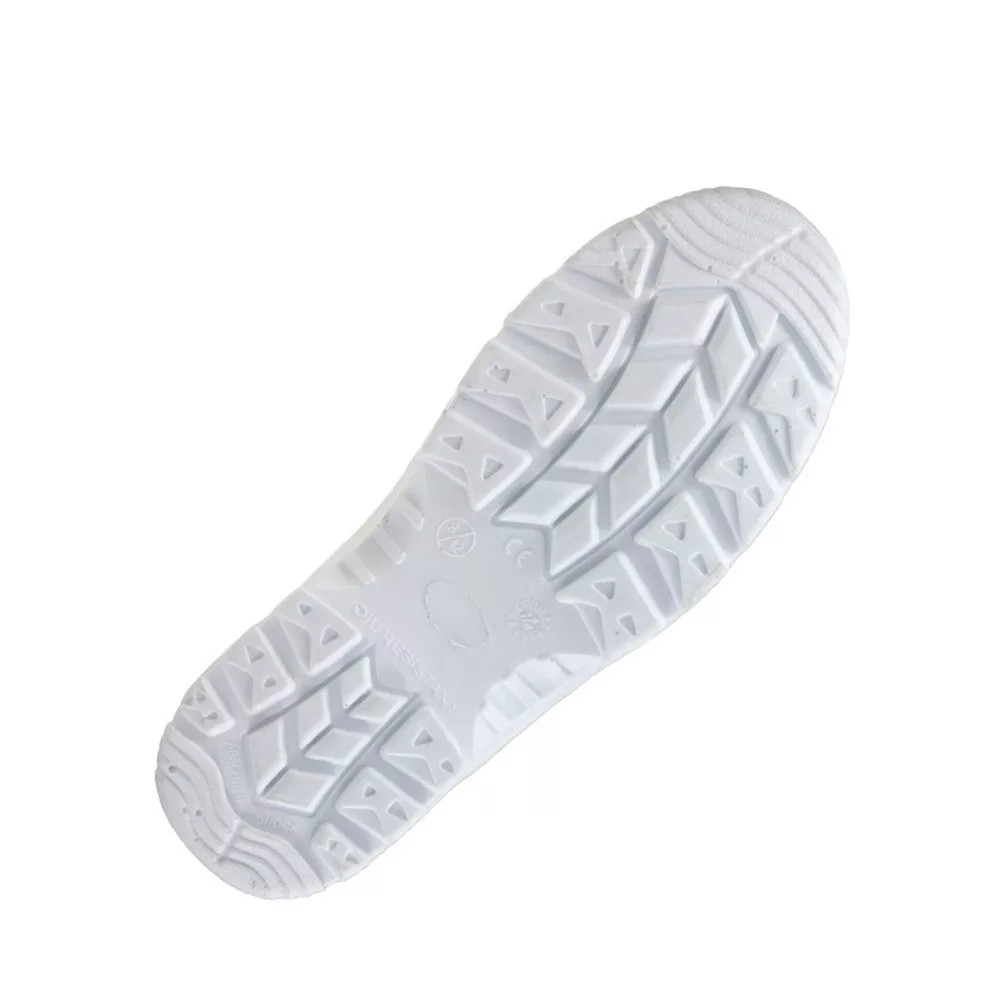 Talp:csúszásmentes, olajálló, antisztatikus, energiaelnyelő sarok, kétrétegű PU/PU, a külső talp keményebb, a belső puhább