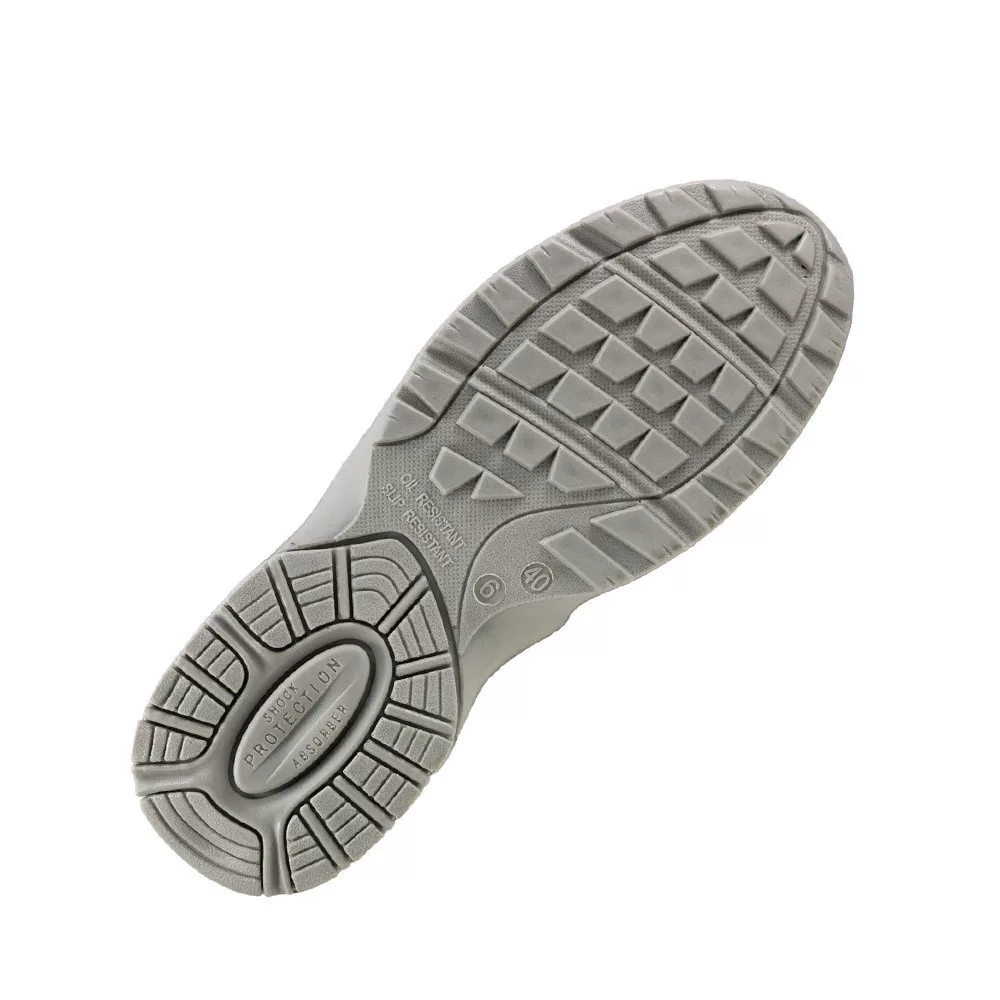 Talp:csúszásmentes, olajálló, energiaelnyelő sarok, kétrétegű PU/PU, a külső talp keményebb, a belső puhább