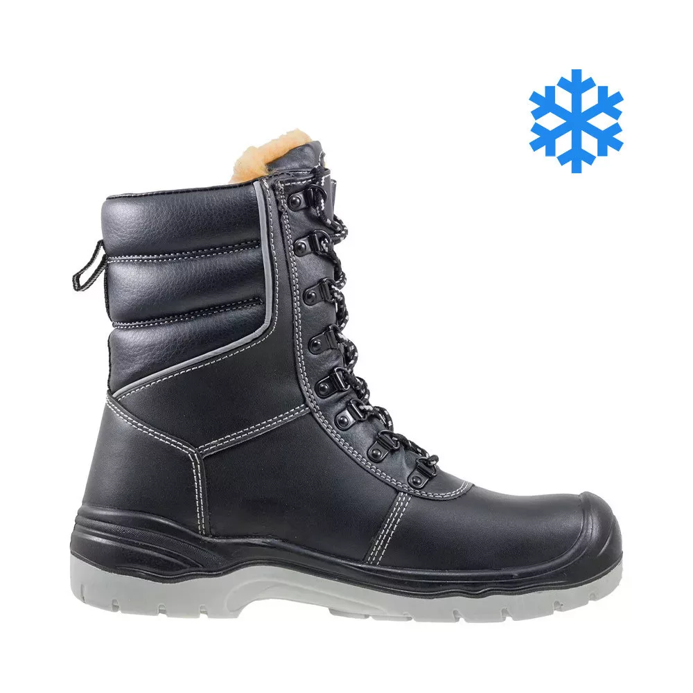 Talp:csúszásmentes, olajálló, antisztatikus, energiaelnyelő sarok, kopásálló orrborítás, kétrétegű PU/PU, a külső talp keményebb, a belső puhább