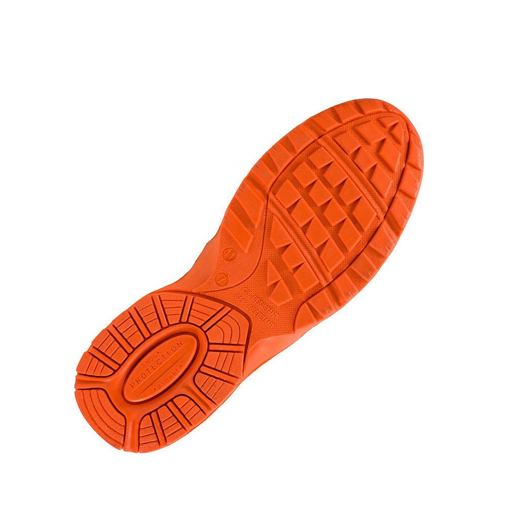 Talp:csúszásmentes, olajálló, energiaelnyelő sarok, kétrétegű PU/PU, a külső talp keményebb, a belső puhább