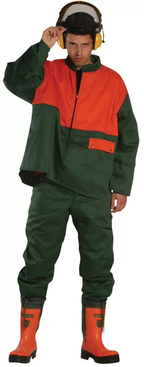 * kopásálló poliészter és szellőző pamut alapanyagok keveréke * az elejerészeken, a vállaknál és az ujjakon 11 rétegű, aramidszálas vágásvédő betét * véd 20 m/s láncsebességű láncfűrész által okozott vágó hatás ellen * zöld színben, narancs rátéttel, állítható vállpántok, négy zseb