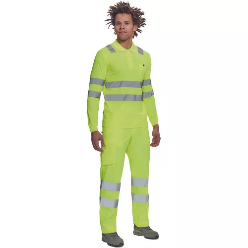 • férfi munkanadrág 7 cm széles fényvisszavető csíkokkal és HI-VIS elemekkel • 2 oldalsó zseb + 1 érmezseb • 2 oldalzseb • 2 hátsó zseb • rugalmas oldalsó betétek a derékon • meghosszabbítható szárhossz