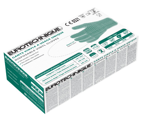 100 darab átlátszó vinyl, púder nélküli, 0,06mm vastag vizsgálókesztyű, hajtott mandzsettávalAQL: 1,5