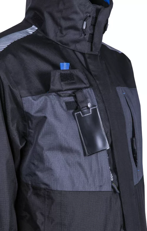 Wani fekete/szürke, ripstop 3/1 télikabát * RIPSTOP (4 mm): PVC-vel borított 100% poliészter - 280 g/m2 vastag * HÁLÓS BÉLÉS: 100% poliészter - 70 g/m2 (testen) * Állógallérba rejtett Oxford viharkapucni * Tépőzáras és patentos hajtókával fedett dupla kocsis cipzár * 2 cipzáras felső zseb és egy tépőzáras fedett felső zseb, 2 cipzáras oldalzseb, 2 tépőzáras belső zseb * Tépőzáras mandzsetta *3 rétegű SOFTSHELL: 94% poliészter / 6% elasztán + TPU membrán + mikropolár - 300 g/m2 * Állógallér és cipzár állvédővel * 2 cipzáras oldalzseb és 2 belső oldalzseb * Gumírozott mandzsetta