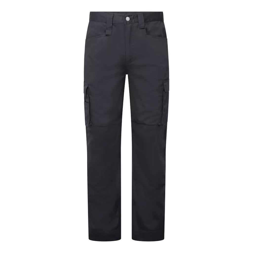 This WX2 Eco Combat Trousers is constructed in or incredibly durable GRS Kingsmill twill fabric, and is built to take on the toughest of jobs. The belt loop with additional loop for hanging tools and keys combined with the anti-scratch front fastening make this trouser ideal for a variety of environments. Other key features include internal knee pad pockets, adjustable leg length from regular to long leg, triple stitched seams for extra durability, and cargo pockets with a phone pocket for added security.