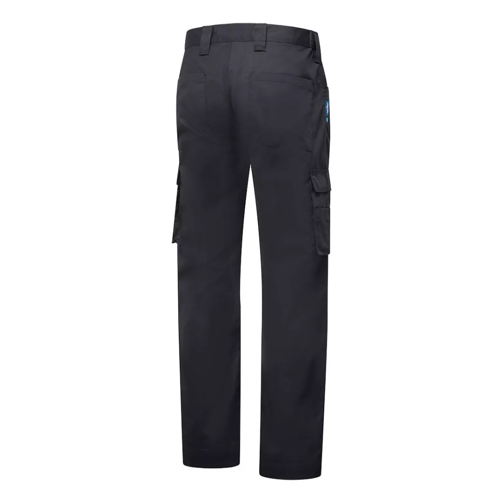 This WX2 Eco Combat Trousers is constructed in or incredibly durable GRS Kingsmill twill fabric, and is built to take on the toughest of jobs. The belt loop with additional loop for hanging tools and keys combined with the anti-scratch front fastening make this trouser ideal for a variety of environments. Other key features include internal knee pad pockets, adjustable leg length from regular to long leg, triple stitched seams for extra durability, and cargo pockets with a phone pocket for added security.