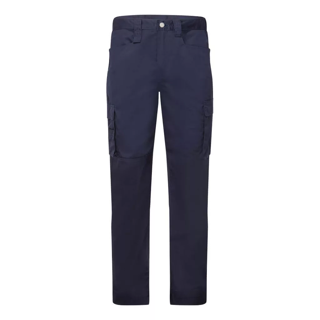 This WX2 Eco Combat Trousers is constructed in or incredibly durable GRS Kingsmill twill fabric, and is built to take on the toughest of jobs. The belt loop with additional loop for hanging tools and keys combined with the anti-scratch front fastening make this trouser ideal for a variety of environments. Other key features include internal knee pad pockets, adjustable leg length from regular to long leg, triple stitched seams for extra durability, and cargo pockets with a phone pocket for added security.