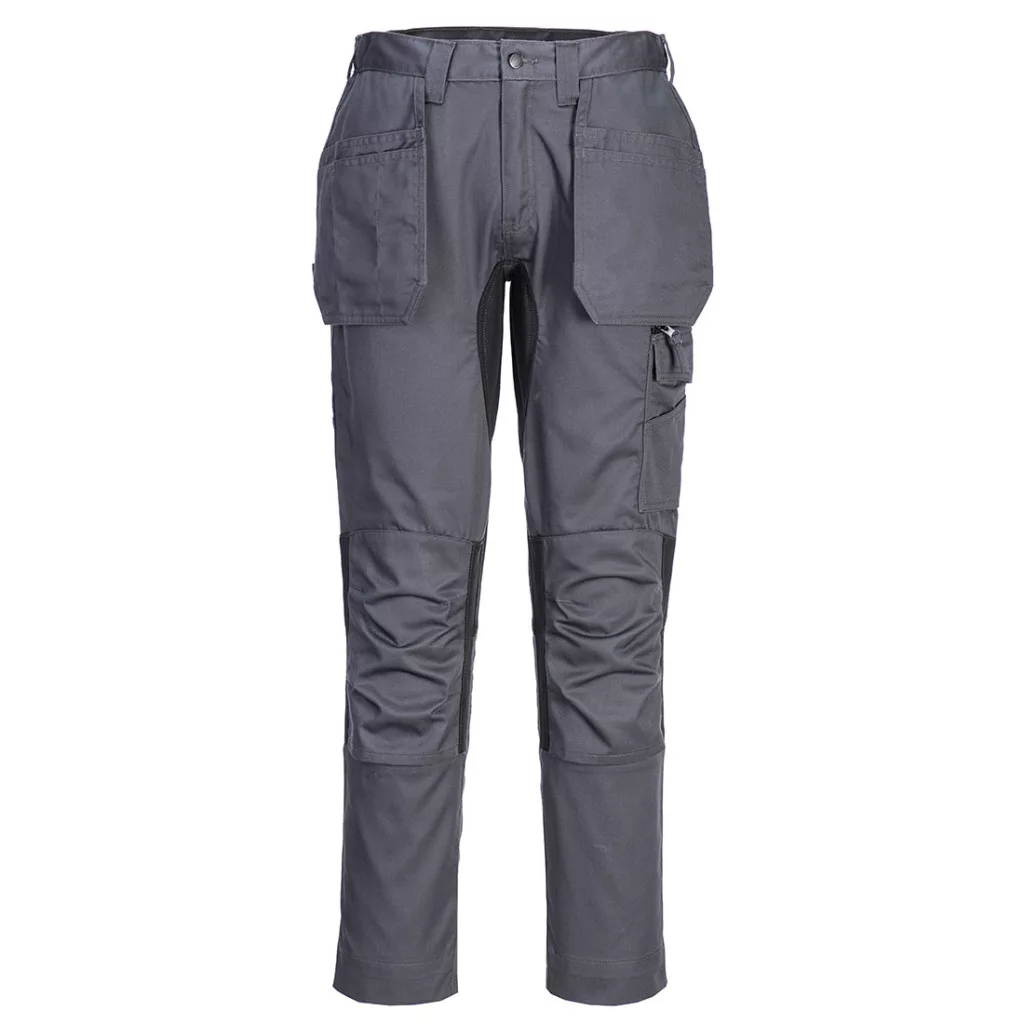 A durable cotton polyester blend fabric allows for both high performance maximum range working, as well as comfort. Stretch panelling allows for ease of movement. Clever features include multi-functional holster pockets, top loading kneepad pockets and an easy access multi-way thigh pocket for secure storage of phone, keys and tools.