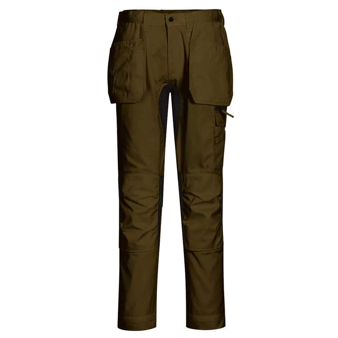 A durable cotton polyester blend fabric allows for both high performance maximum range working, as well as comfort. Stretch panelling allows for ease of movement. Clever features include multi-functional holster pockets, top loading kneepad pockets and an easy access multi-way thigh pocket for secure storage of phone, keys and tools.