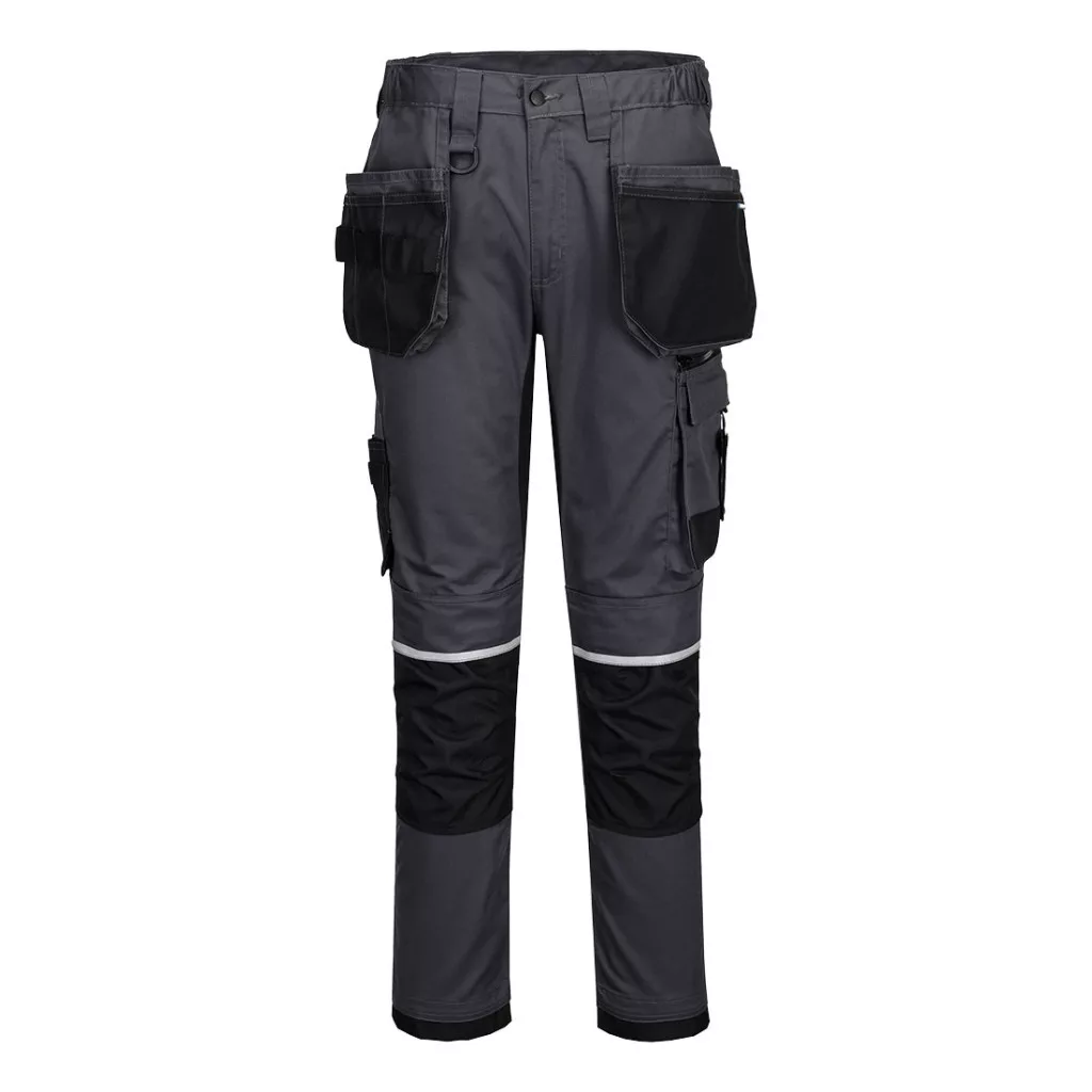 The WX2 Eco Craft Holster Trouser combines the durability of GRS recycled polyester twill with 4-way stretch fabric for a classic slim fit trouser design. Featuring 12 pockets, a hammer loop, top-loading knee pad pockets and an extendable leg length.