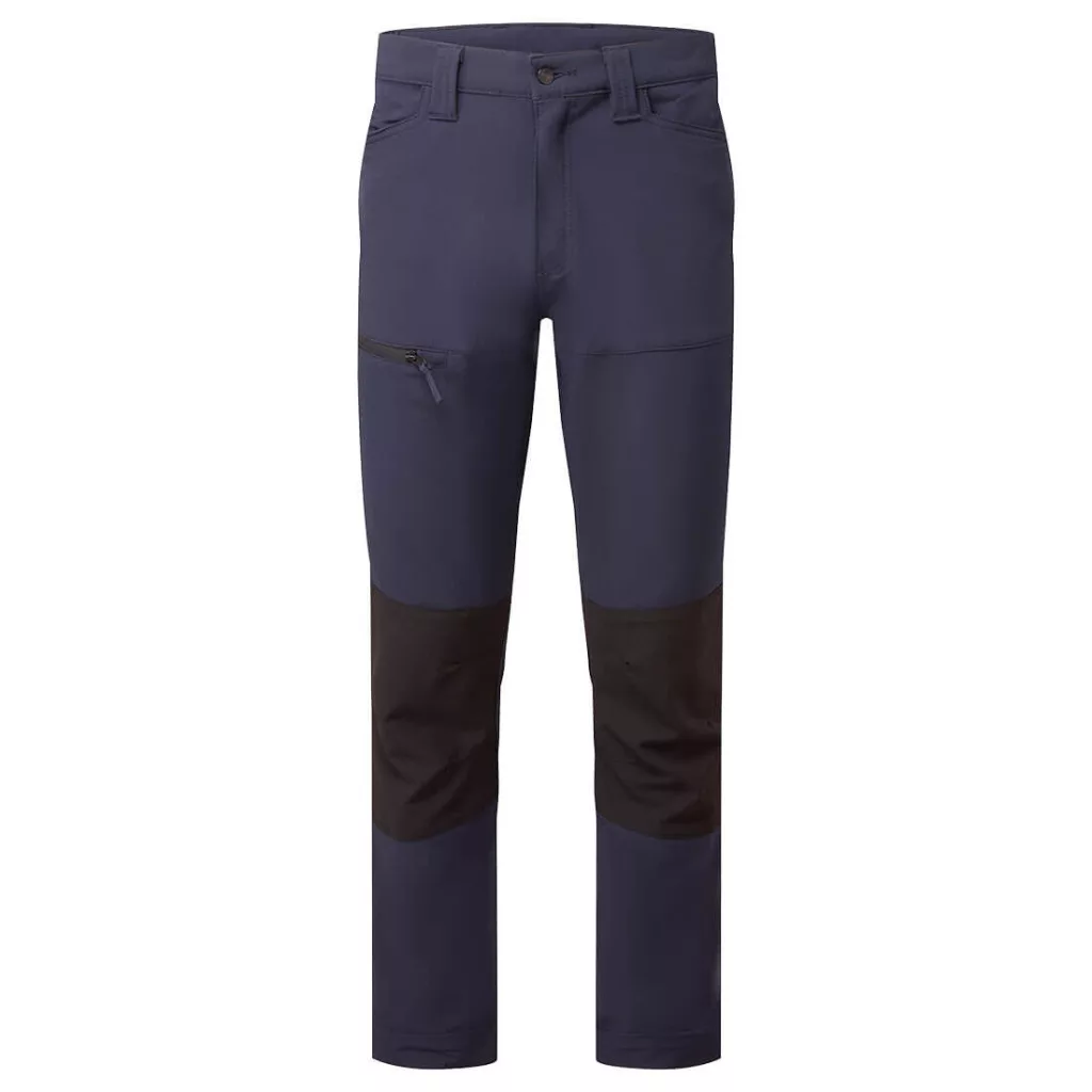 The 4 pockets provide excellent storage without adding bulk to the garment. Side elastic and 4 way stretch provide superior comfort and suitability on this work trouser and all in a recycled polyester.