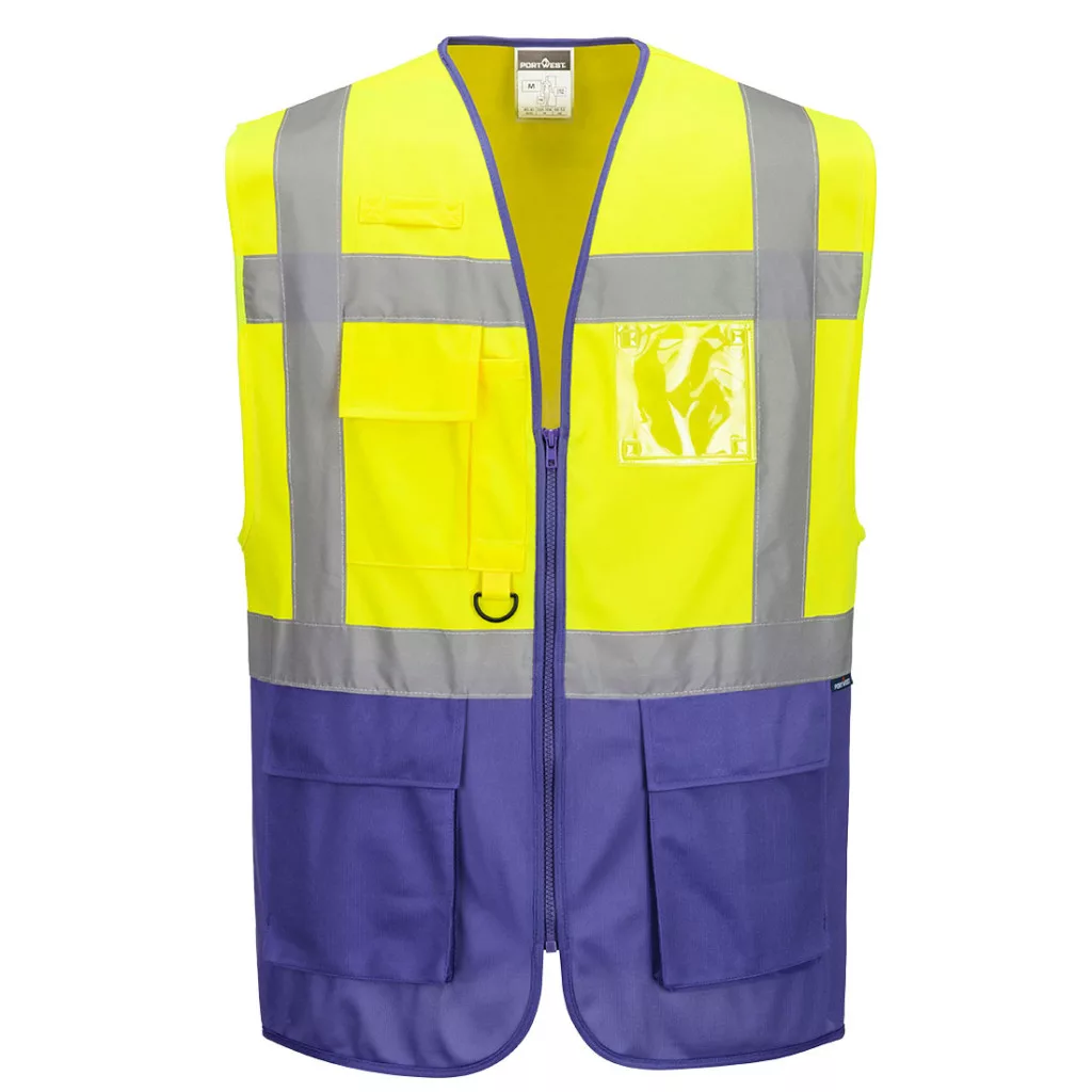 This two-tone option in our executive vest range features several practical pockets, a dual ID holder, d-ring and a radio loop. It is available in a range of contrasting colour combinations to suit the increasing demand in the workplace.