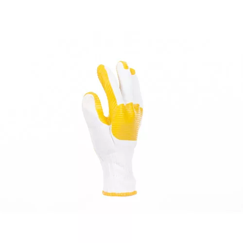 • kevertszálas, kötött védőkesztyű poliészter és pamut felhasználásával, latexszel impregnálva • a kézfej bevonata biztosítja az ízületek védelmét