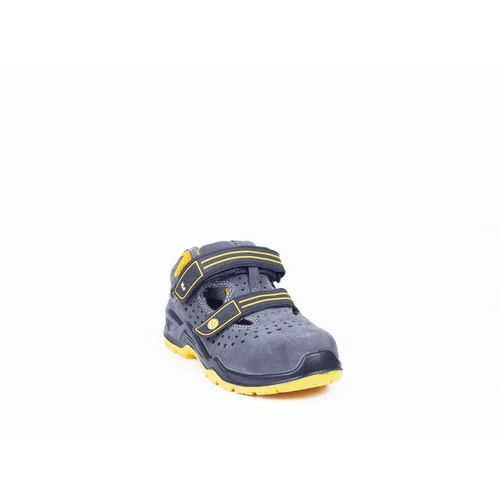» biztonsági szandál szürke-sárga színkombinációban » teljes hosszában perforált nubuk bőr felsőrész » olajálló, csúszásgátló talp kettős sűrűségű poliuretánból » kényelmes, perforált belső talpbetéttel, energiaelnyelő sarokkal, kompozit lábujjvédővel, és kompozit köztappal » ESD védelem » nem tartalmaz fém alkatrészeket