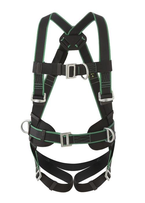 * Teljes testhevederzet munkahelyzet-beállító derékövvel* Alkalmazható leesés ellen védő és munkaterületet korlátozó rendszerek részeként