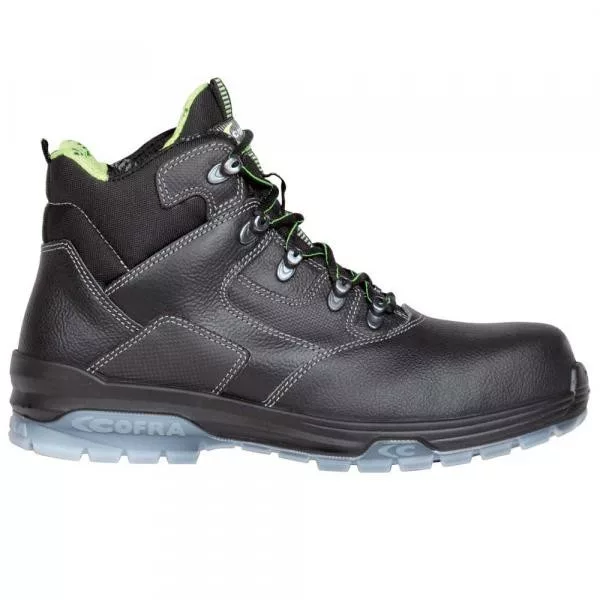 A túrabakancsok által inspirált vízlepergető bőr védőbakancs szellőző béléssel és energiaelnyelő talppal.