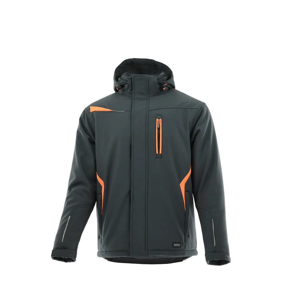 Sara Comfort Winter bélelt softshell hosszú kabát s.szürke - narancs