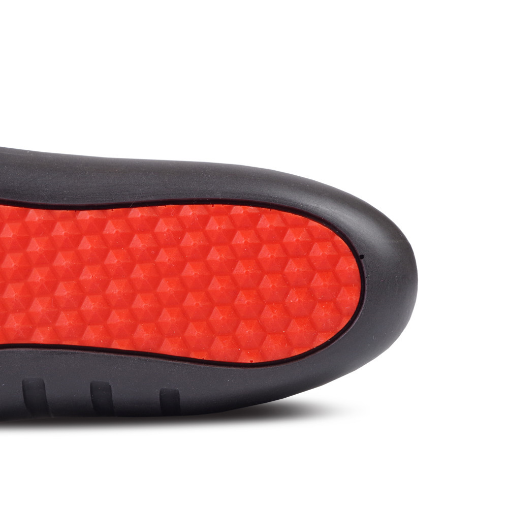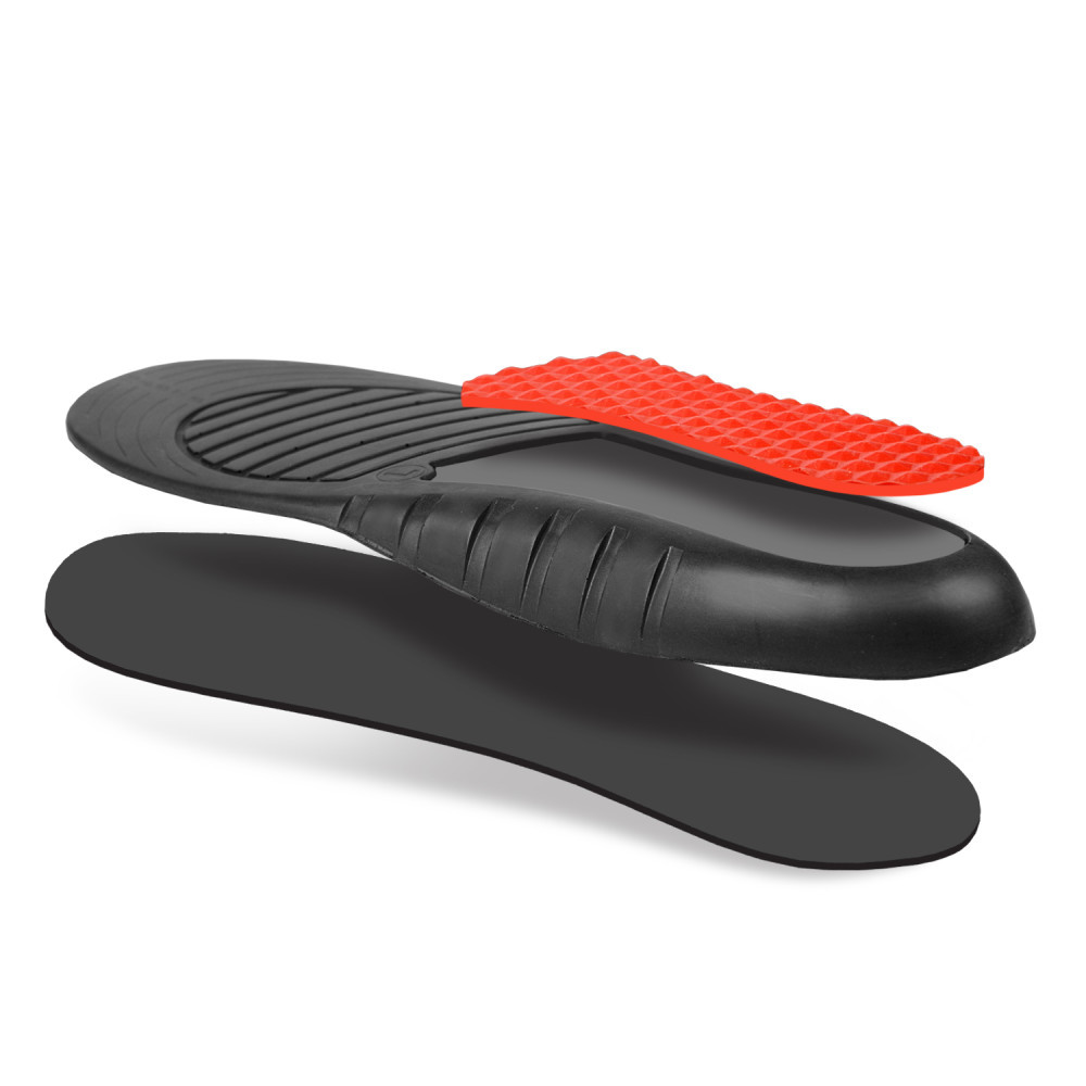 Textillel bevont, PU habból öntött talpbetét, a saroknál és lábközépnél TPE gélpárnával. Az elülső perforáció biztosítja a szellőzést a talp alatt, és elvezeti az izzadságot. A talpbetét puha, viselése kényelemes. A piros, méhsejt szerkezetű gélpárna elnyeli a járás okozta ütéseket. A hosszanti ív és a sarokrész párnázottsága növeli a láb talajjal való érintkezési felületét, és ezáltal stabilizálja a sarok helyzetét. A talpbetét alsó rétege csúszásmentes, ami megakadályozza, hogy elmozduljon a cipőben, használatával csökkenhet a fájdalom- és fáradtságérzet a lábban. Aktív embereknek és munkahelyi használatra ajánlott, különösen azoknak a munkavállalóknak, akik álló helyzetben dolgoznak, vagy gyakran kell munka közben járkálniuk.