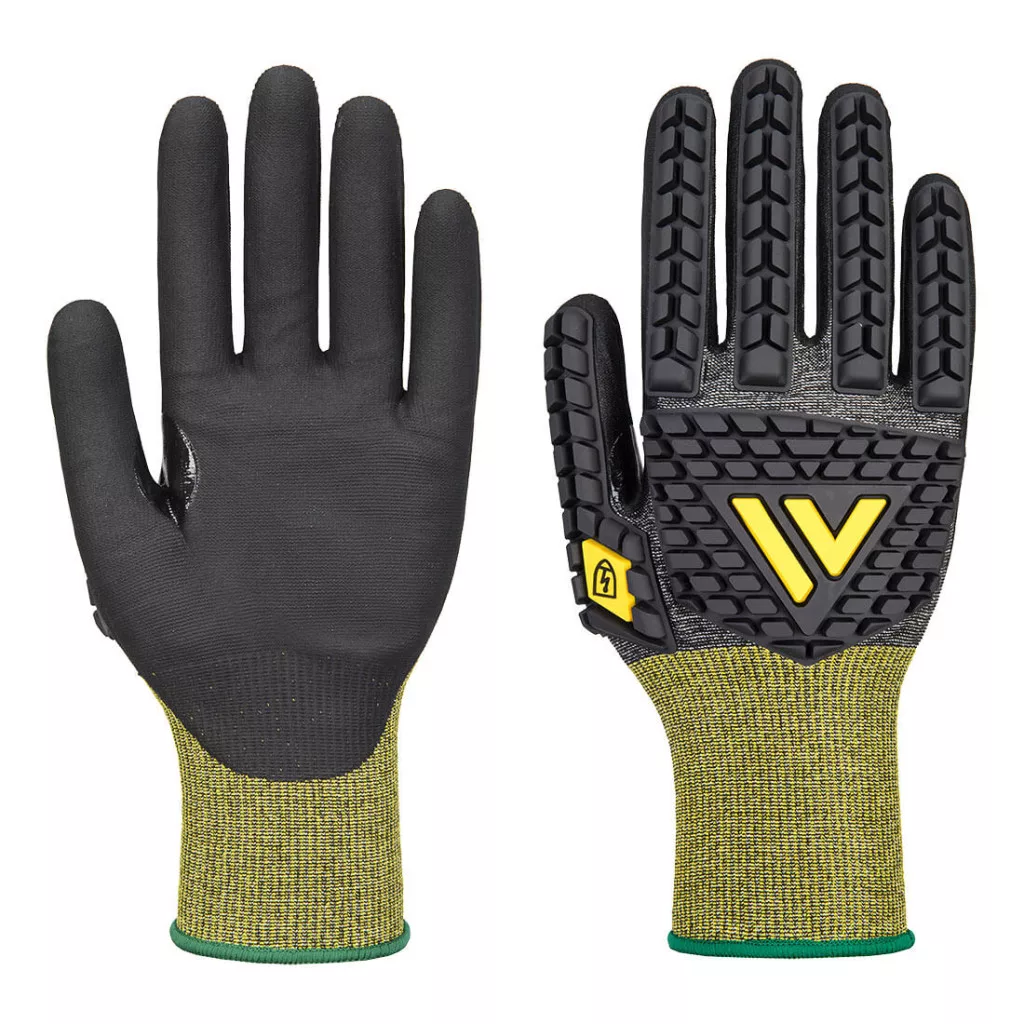 The Impact E18 Nitrile Anti static ESD Glove is engineered for professionals requiring high cut resistance (Level E), impact protection, and electrostatic discharge (ESD) safety. Designed with a durable Water jet washed nitrile-coated palm, a reinforced thumb crotch and anti-static properties. This glove ensures superior safety, grip, and comfort for handling sensitive components and hazardous materials. A756 is designed for flexibility, reducing hand fatigue while maintaining precision and control with a skintight 18-gauge liner and the Ergonomic PVC impact design. The PVC impact plates compliment flexibility with strong impact performance which can comfortably dissipate medium impact loads across the design.