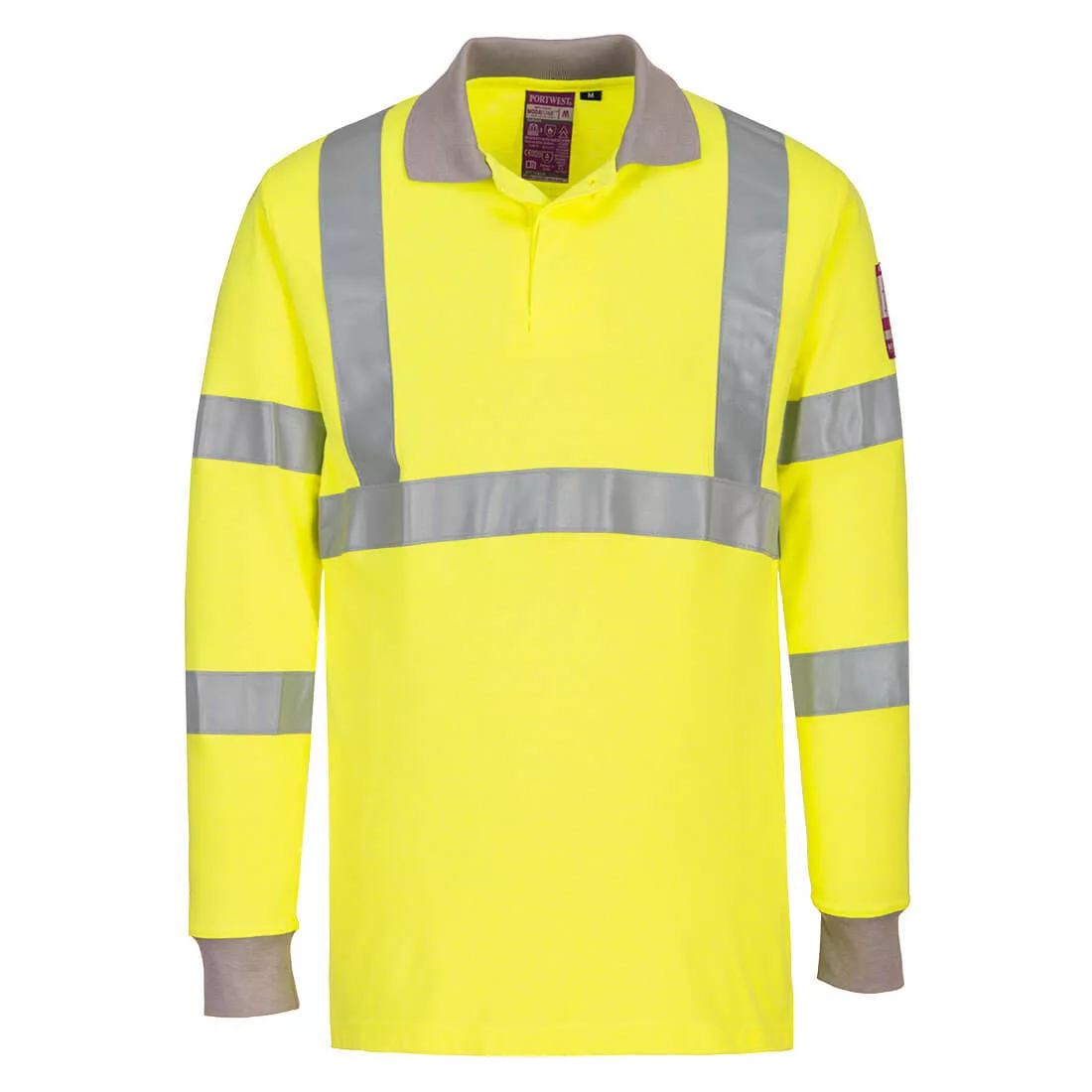 The lightweight, modacrylic fabric together with the reflective strips provide the wearer with advanced visibility and protection in hazardous situations. Features include concealed front button opening and contrast colour on the collar and cuffs.