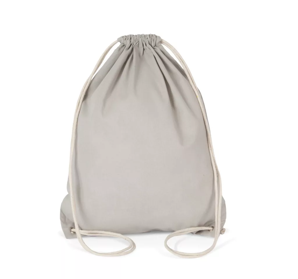 • Pamutból készült, zsinóros hátizsák fehér pamut zsinórral