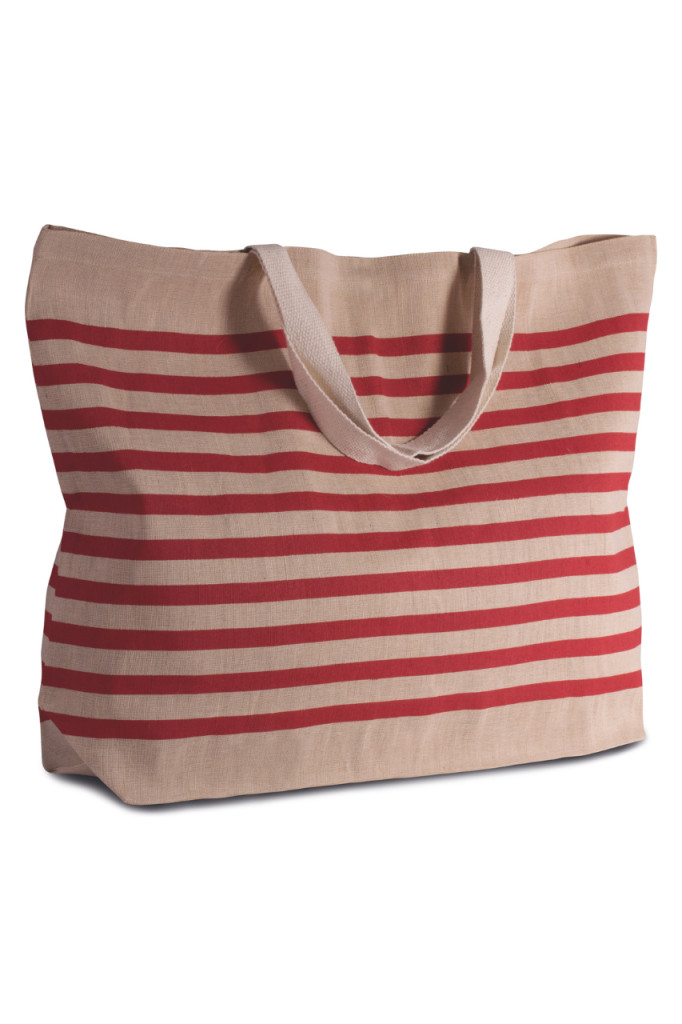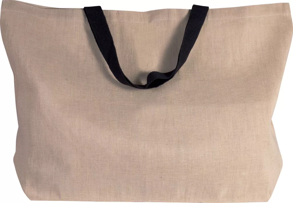 • Nagy mindenes táska jutavászonból és pamutból (juco) oldalrésszel és 55 cm-es, kontrasztos színű fülekkel